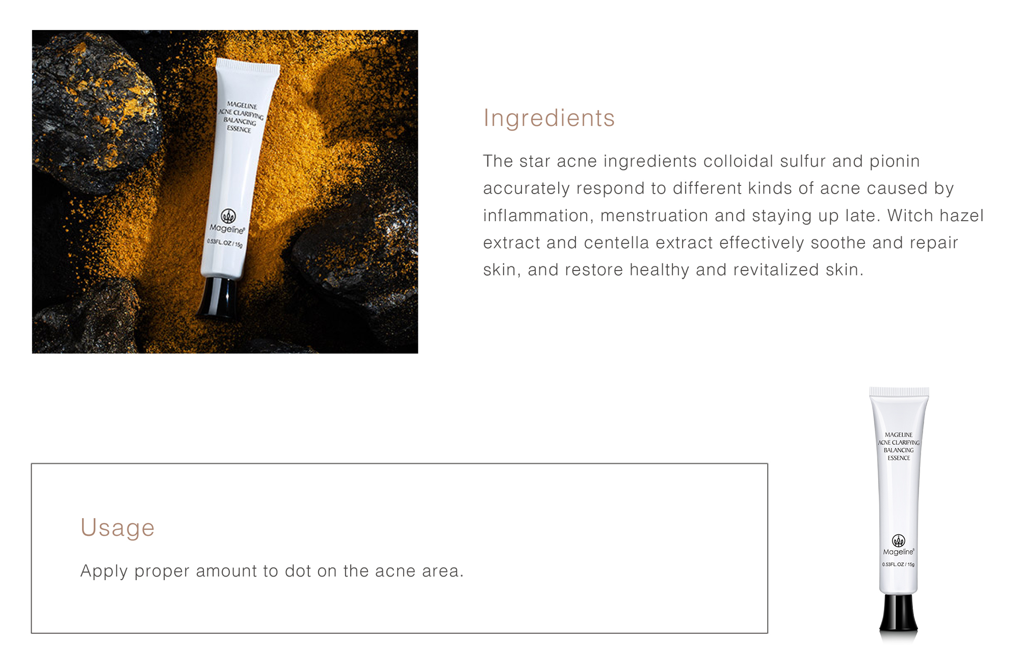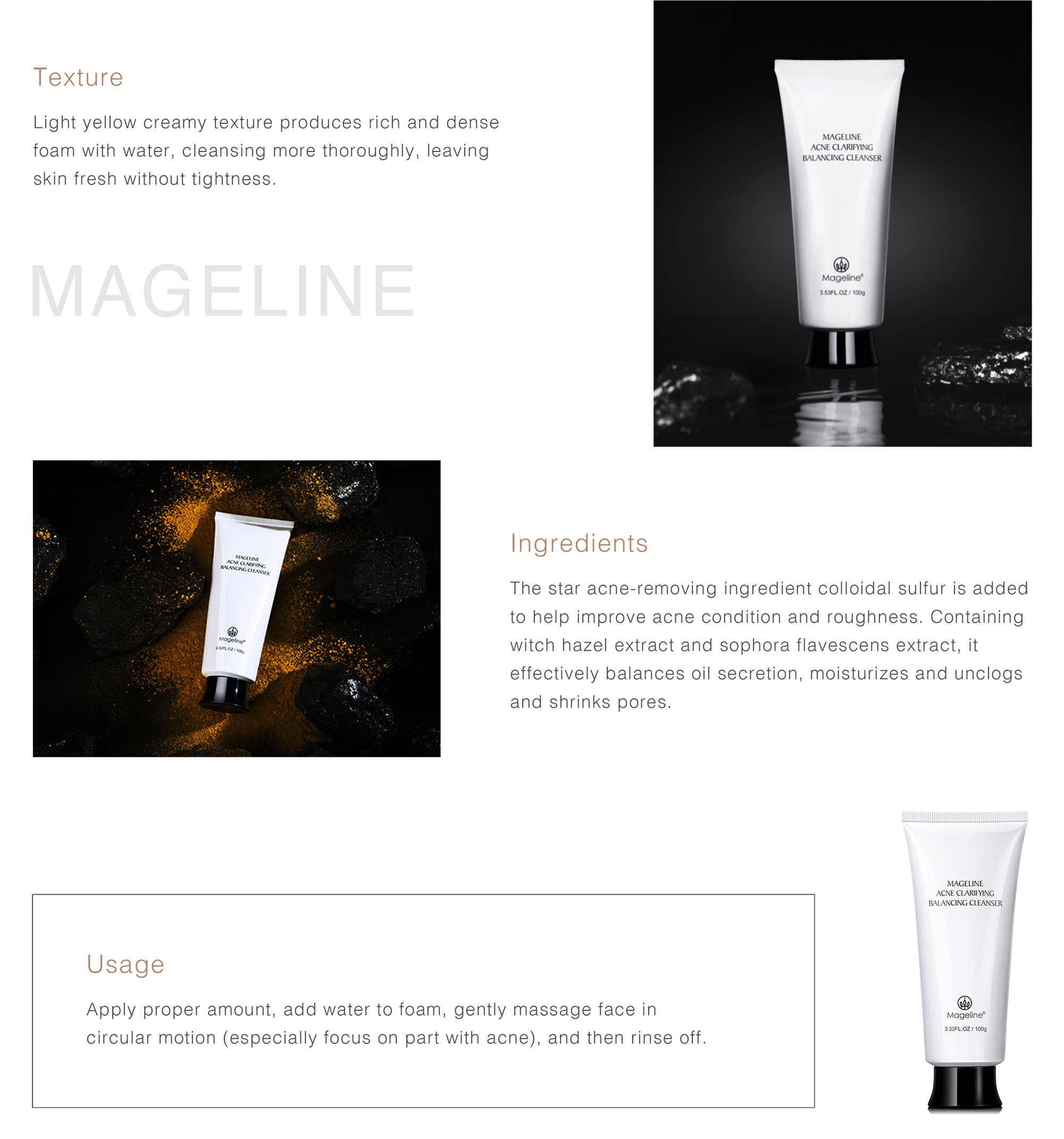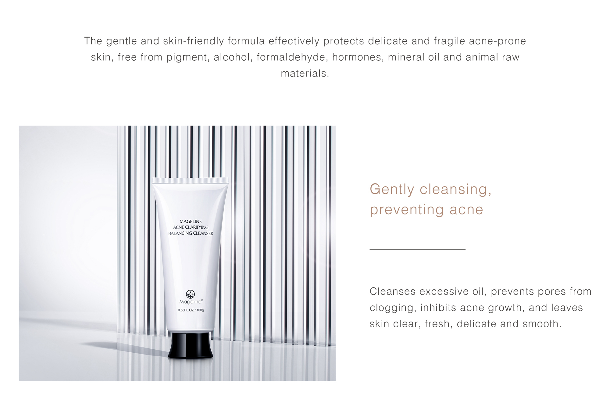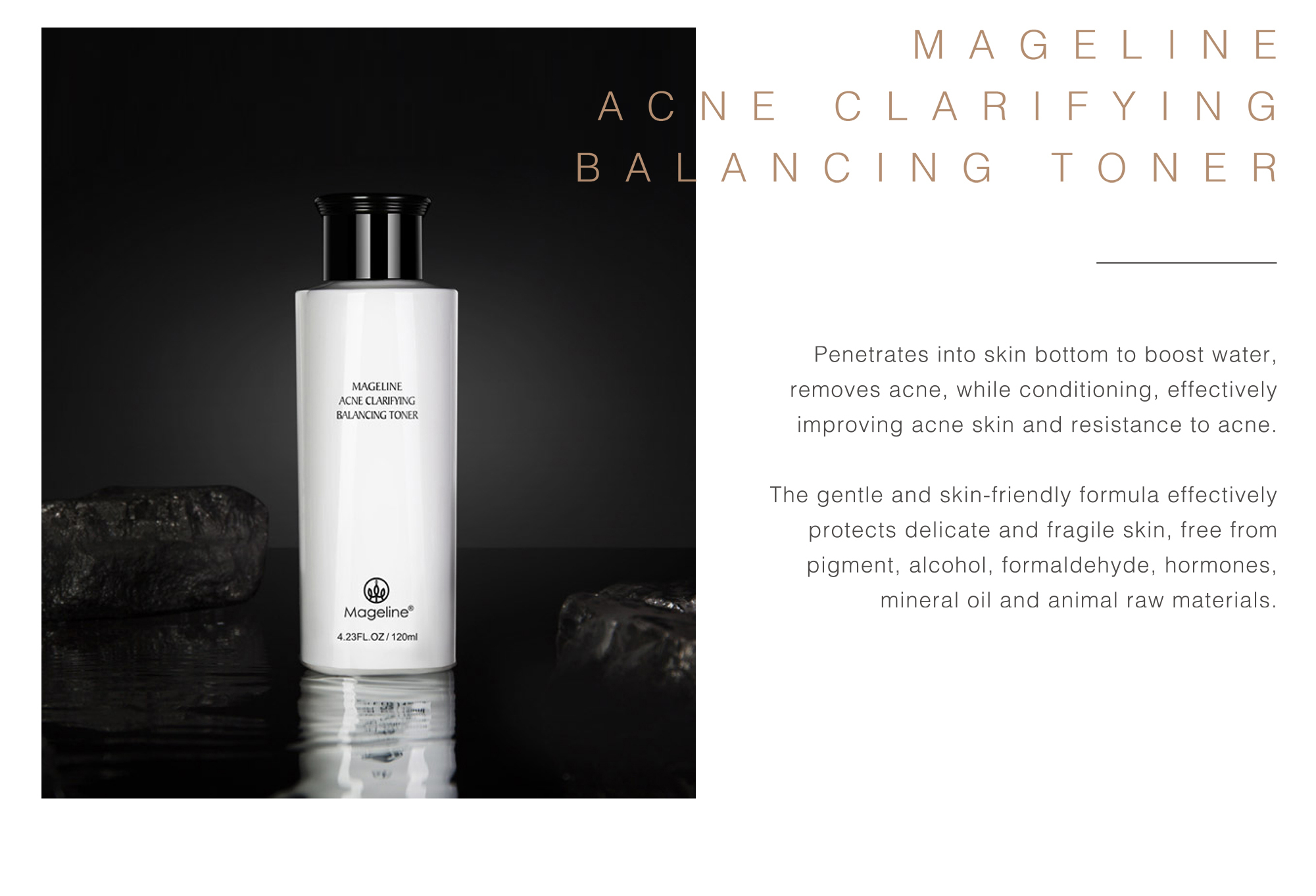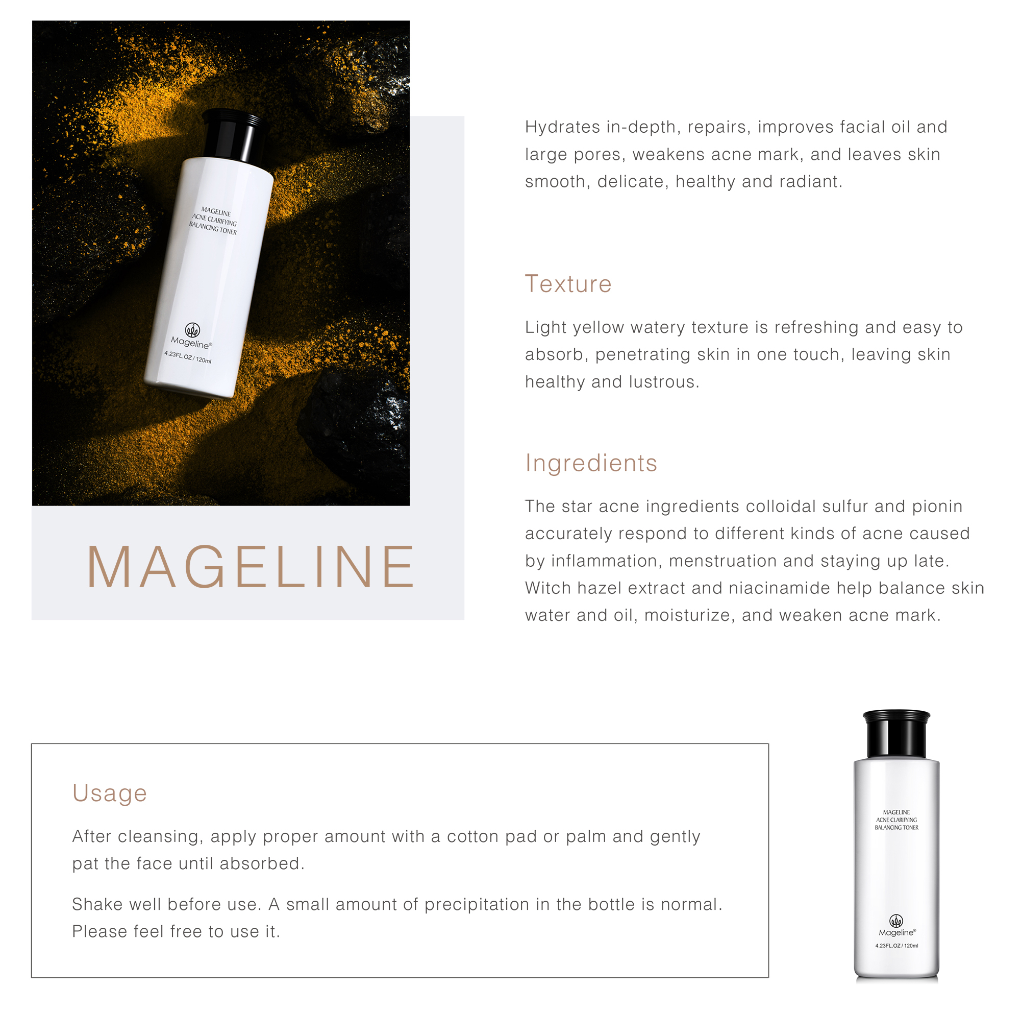 Repeated acne, marks are difficult to disappear? Mageline's "Acne clarifying balancing"skin care can help you smooth acne skin with one touch . Mildly clearing acne, conditioning and repairing, diluting acne marks, and balancing oil and water