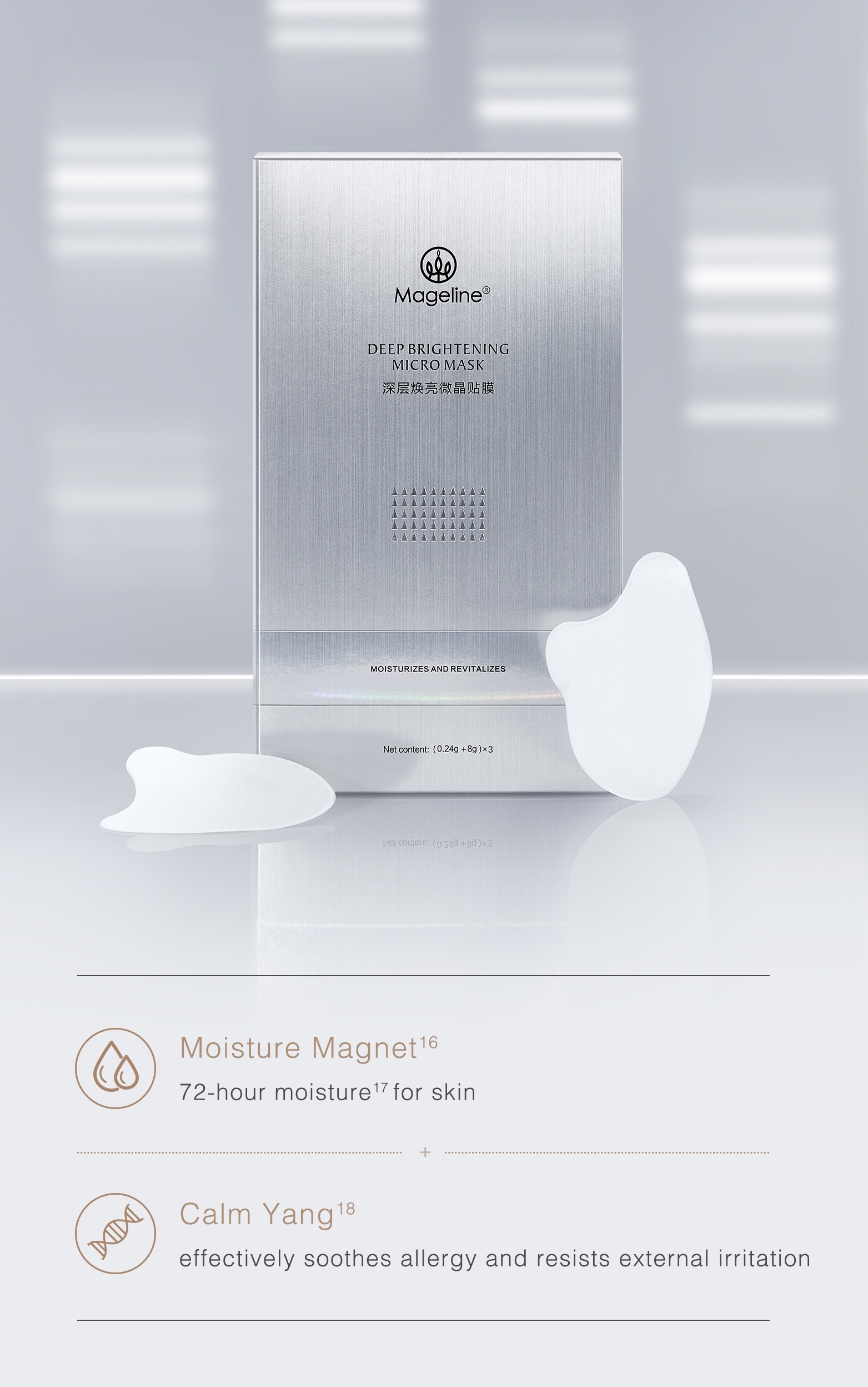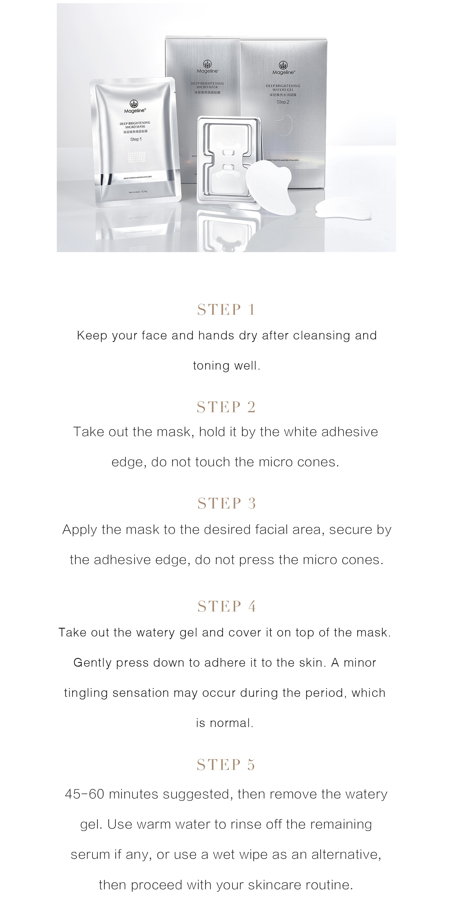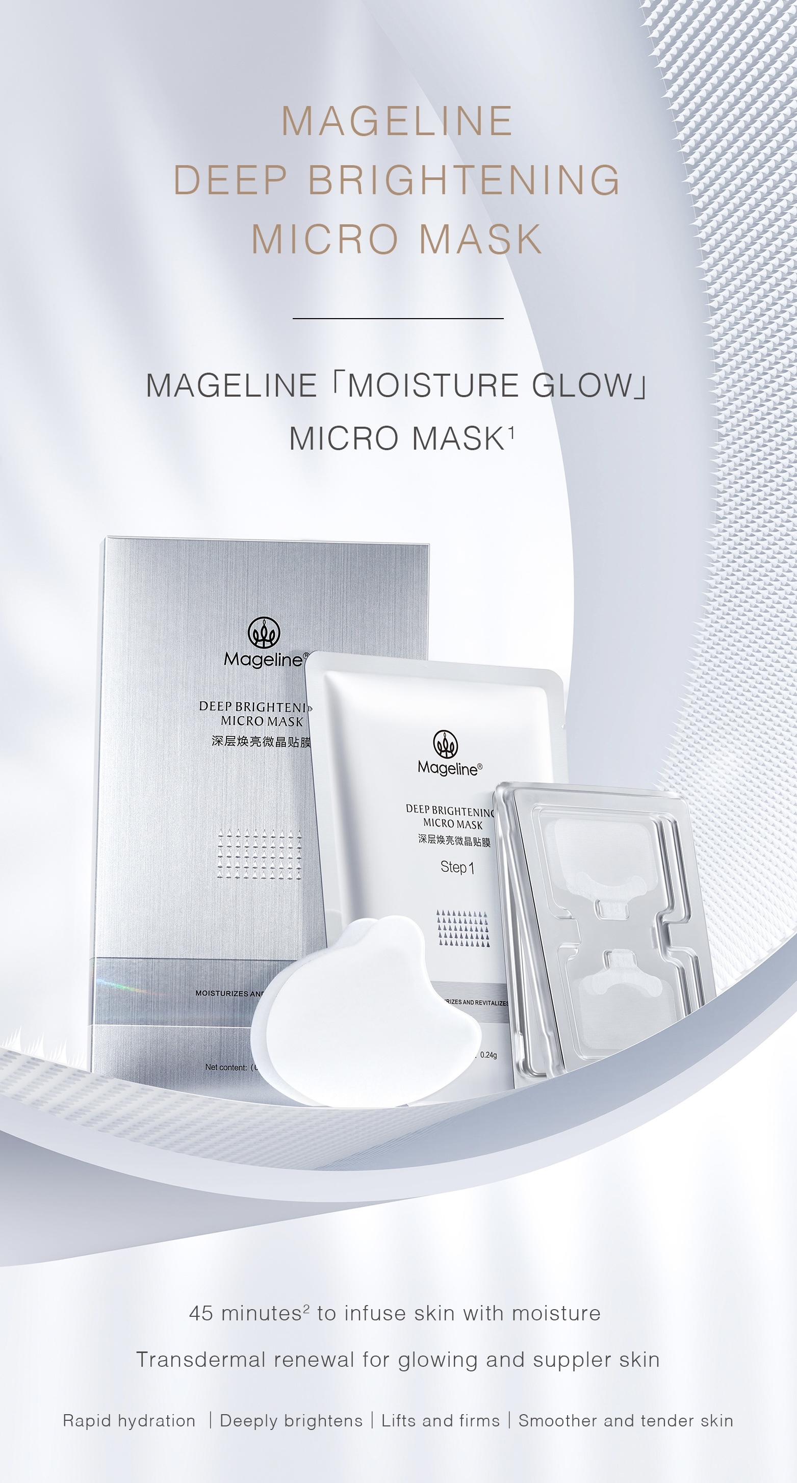 Mageline using patented microcrystalline transdermal technology, it can deeply absorb water lighten in 45 minutes, and transdermal skin will brighten and supple the skin. 4000 patented hyaluronic acid microcrystalline pillars, nutrients penetrate the skin directly to the base, intensively brighten