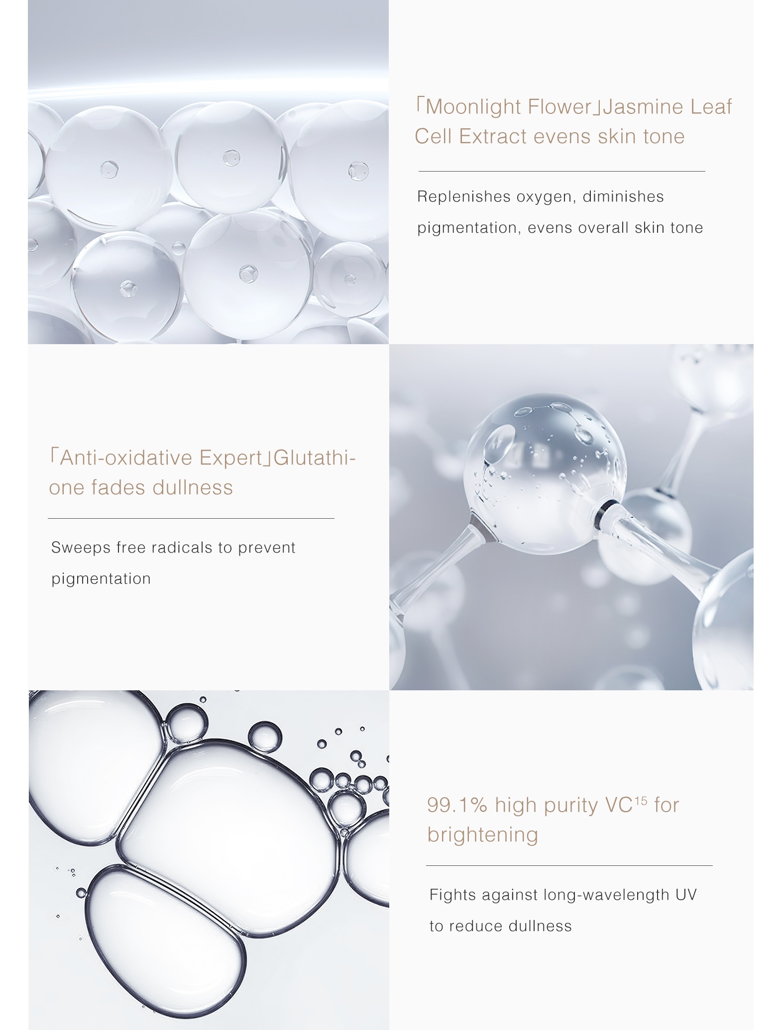 various precious brightening ingredients to help brighten skin tone. Paired with the deep brightening