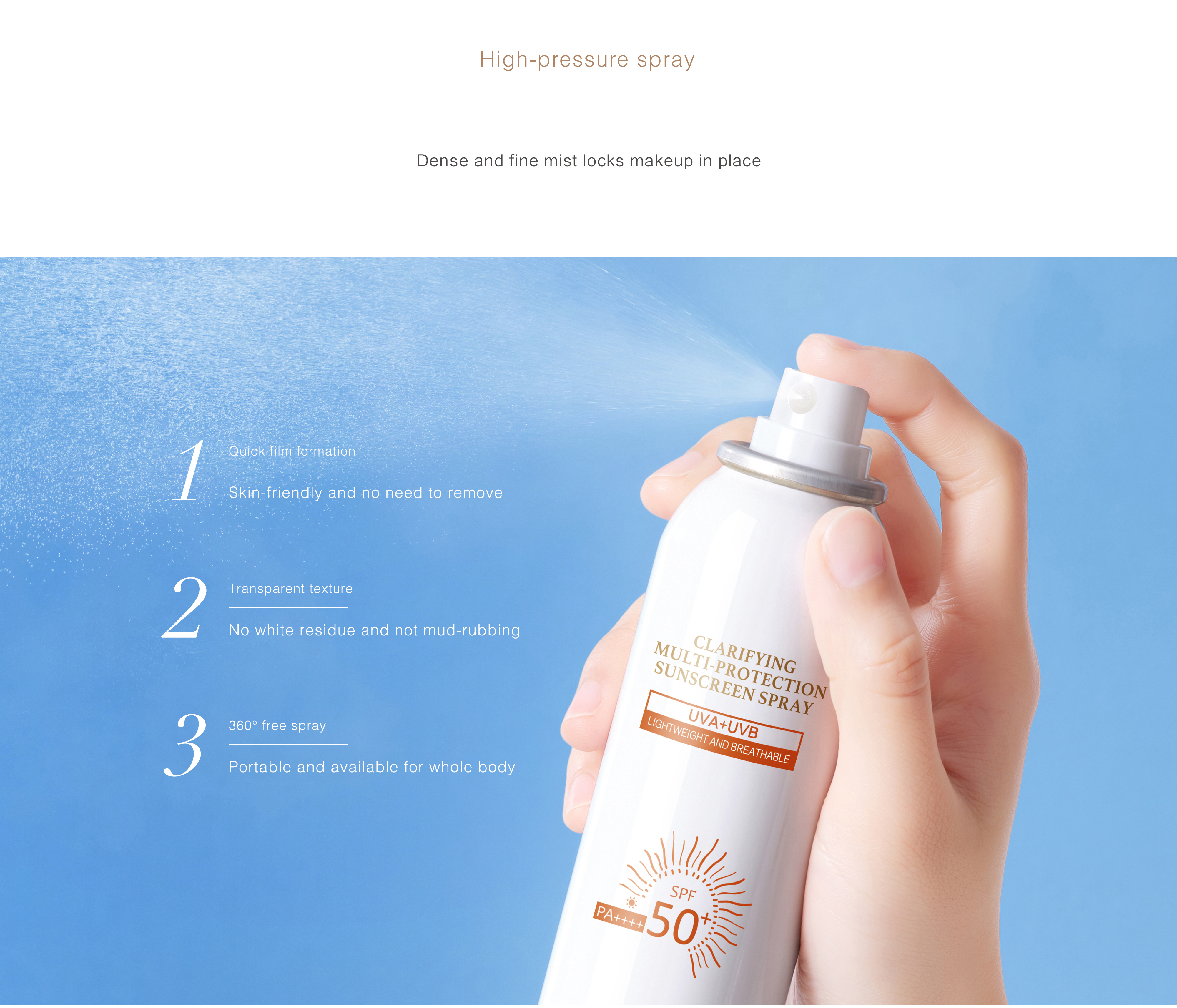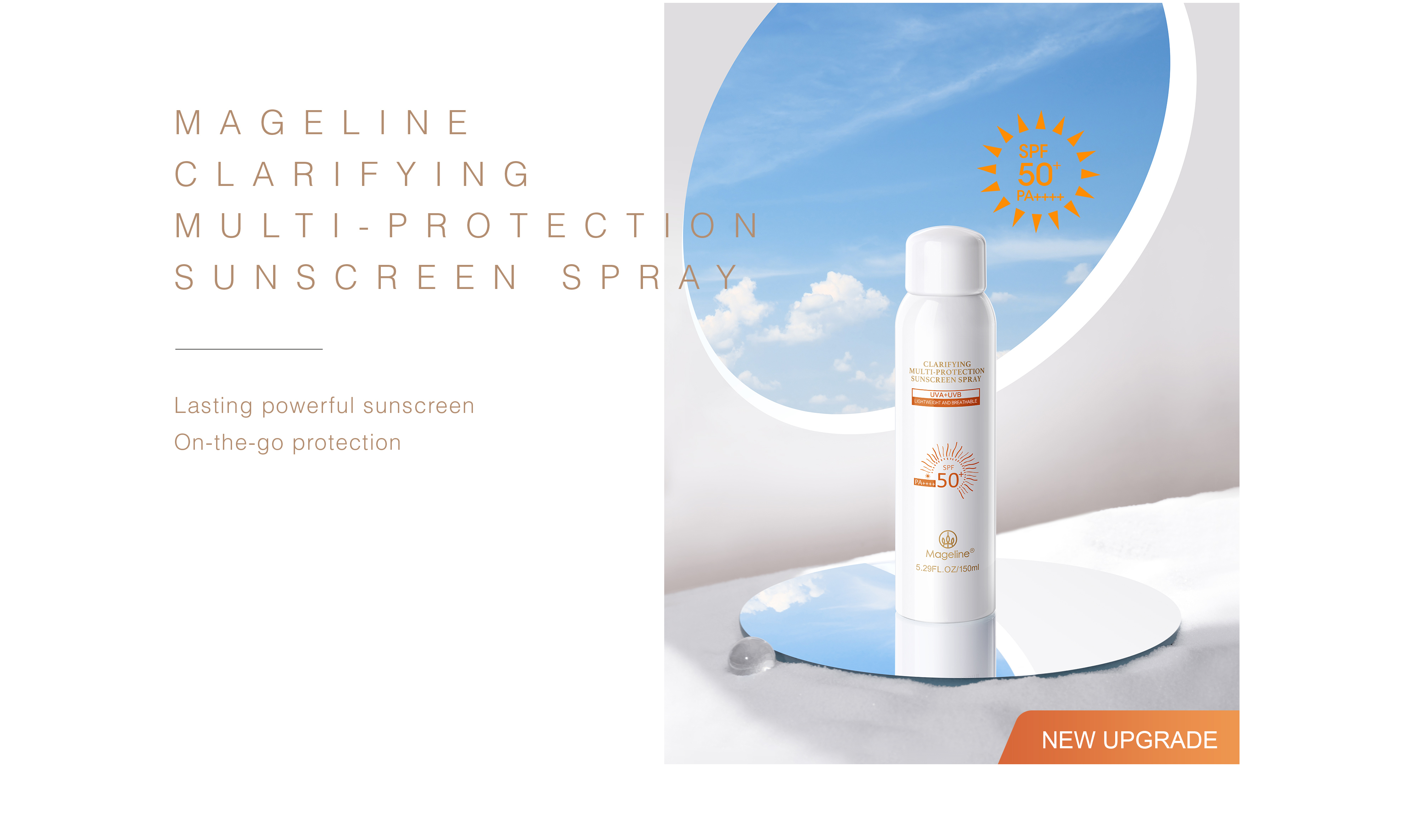 Mageline’s new upgraded clear and double protection sunscreen spray, high sun resistance, moisturizing, clear and not greasy