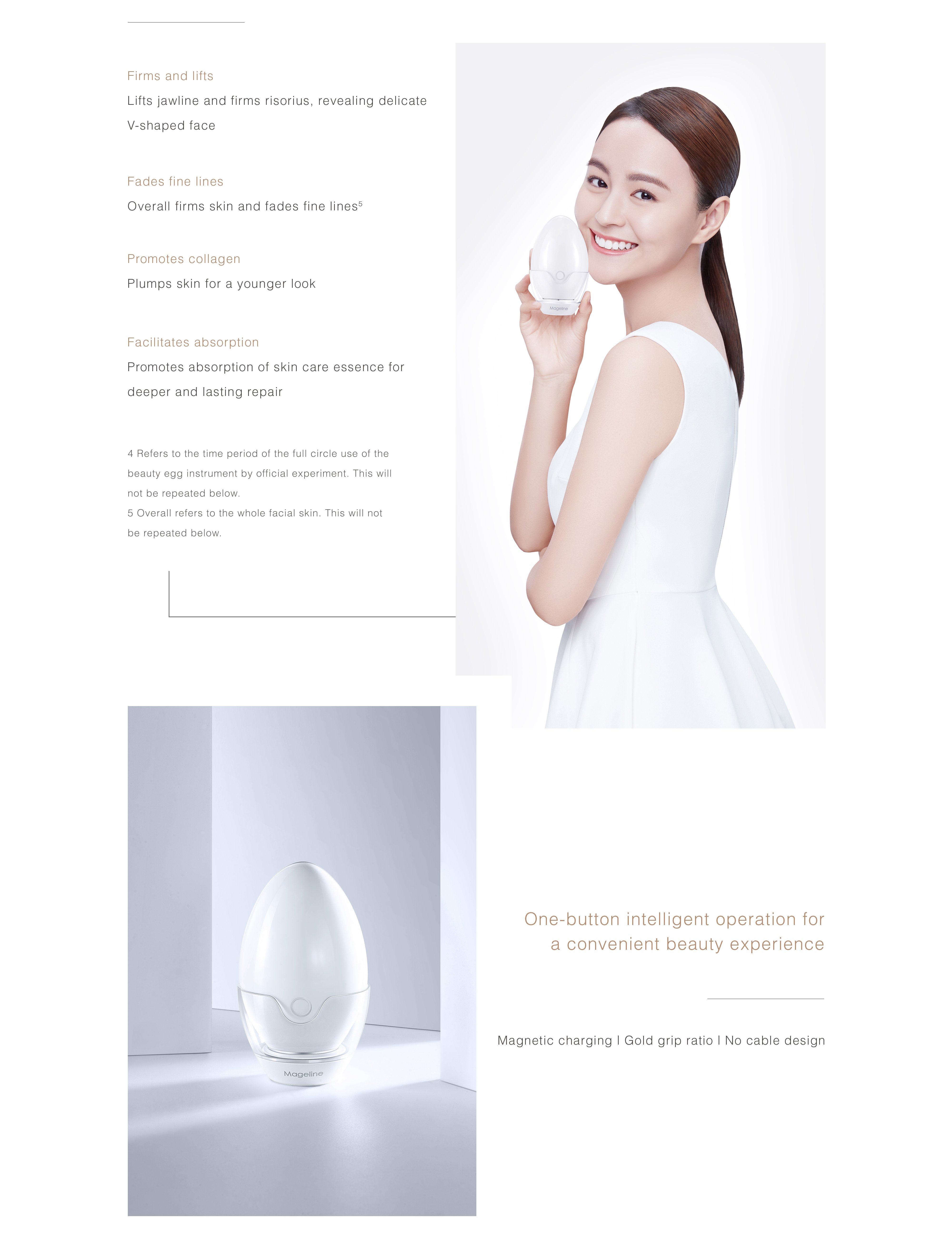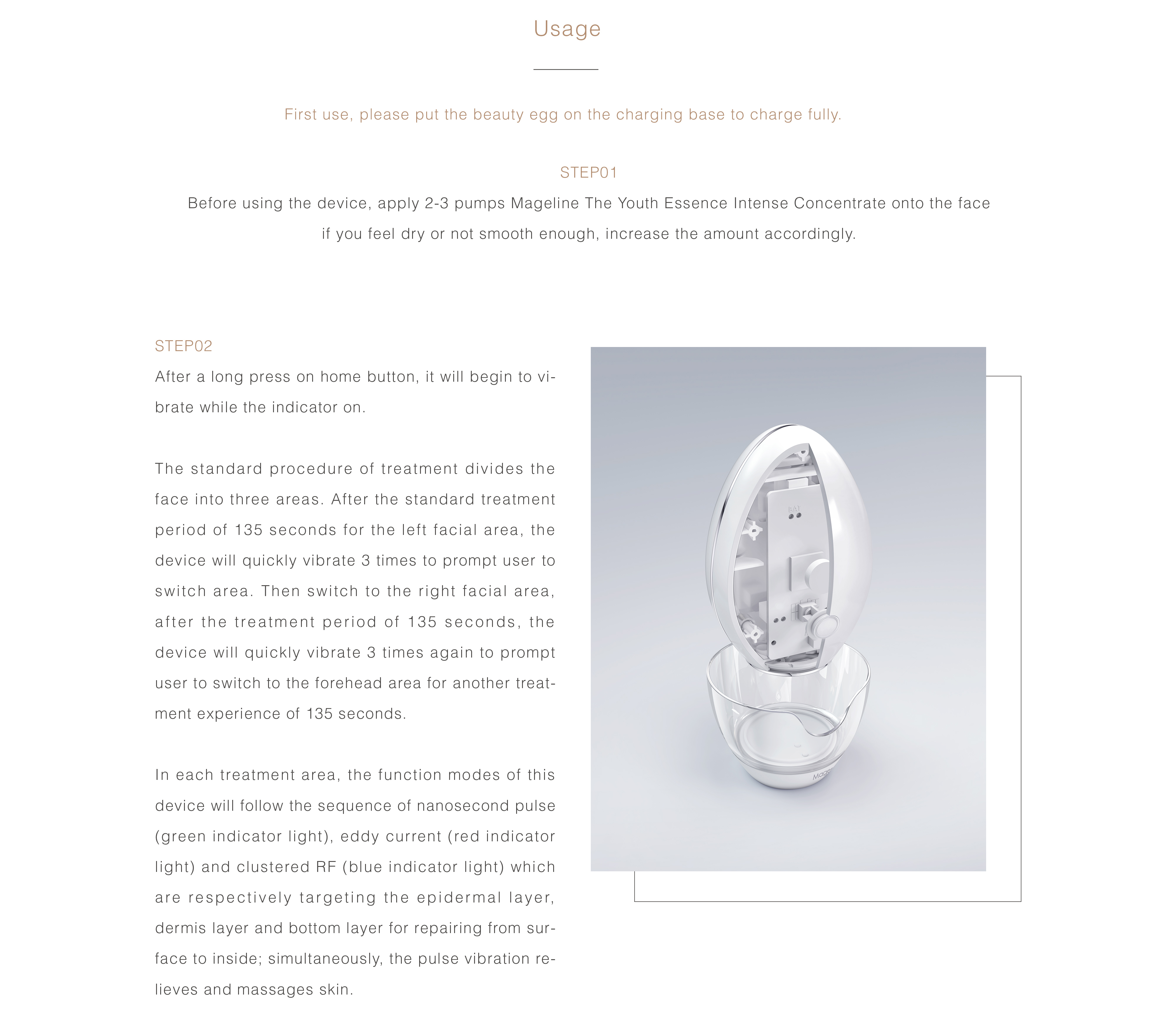 Step 1 Take out two pumps of Magline The Youth Essences Intense Concentrate and apply evenly on face before using the instrument.