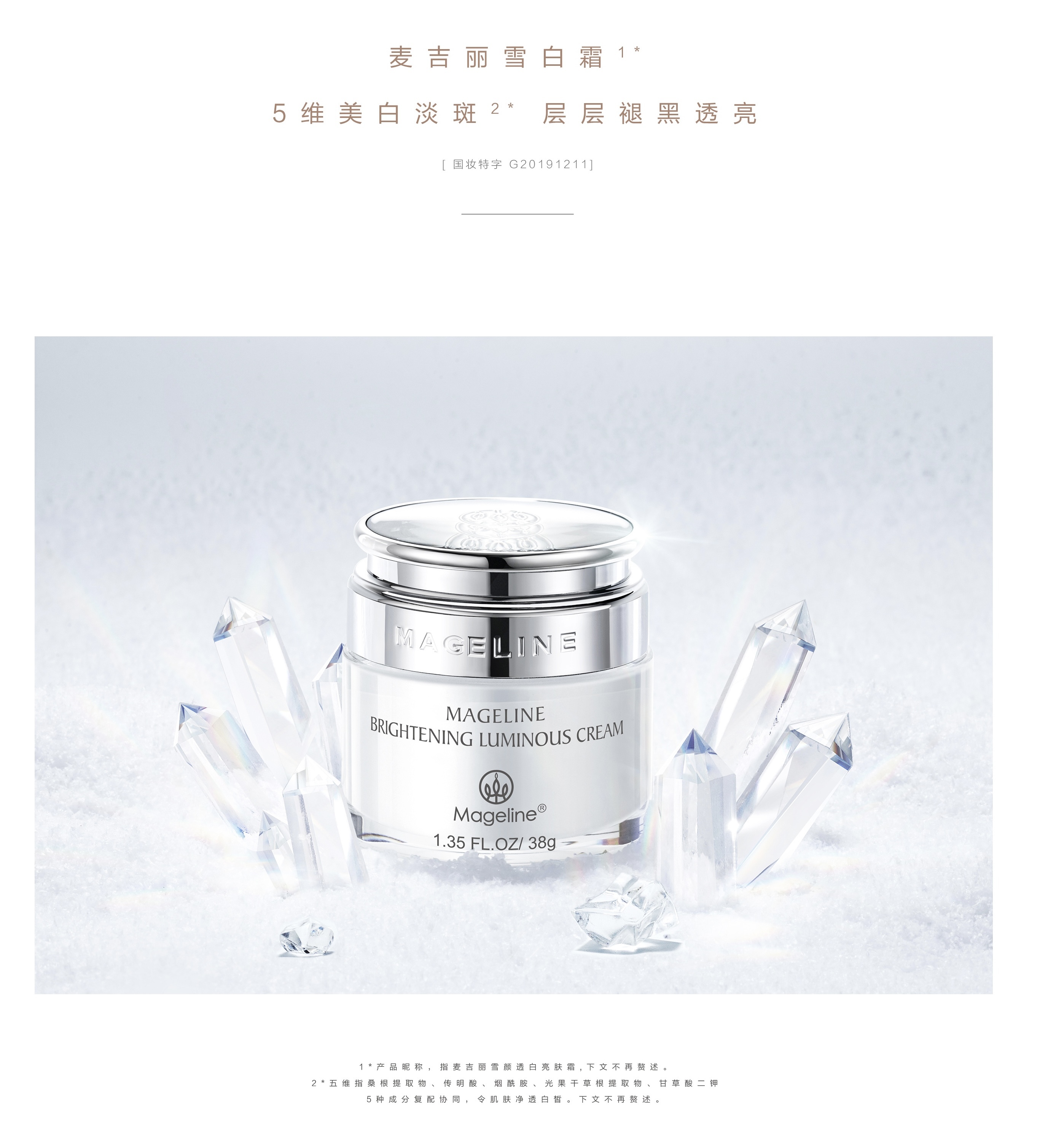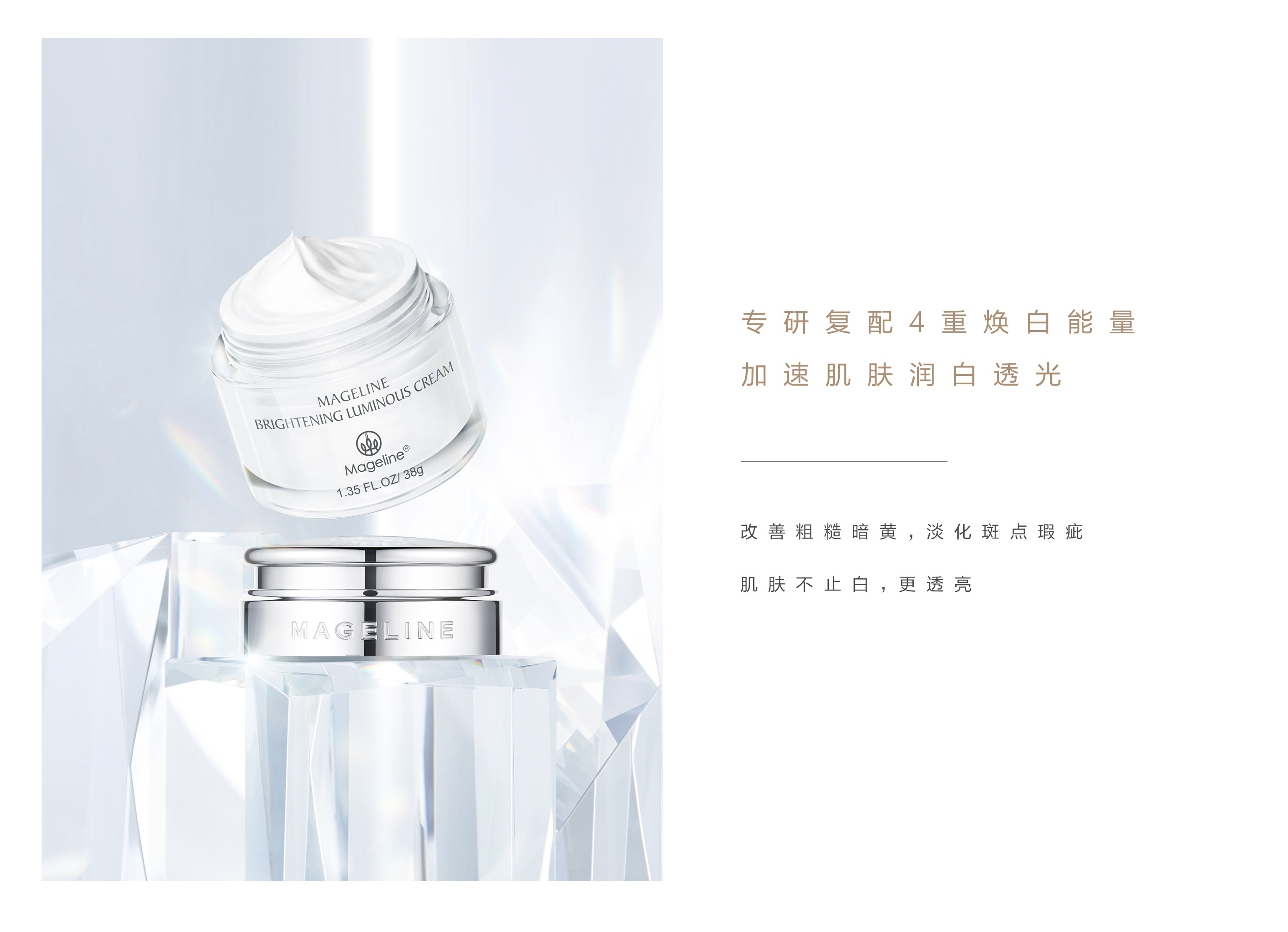 麦吉丽雪颜晶透系列, 日本研发, 从肌底改善肌肤粗糙暗沉,令肌肤匀亮通透. 质地清爽, 轻盈渗透至肌底, 为肌肤温和补水的同时, 舒缓肌肤, 提亮肤色, 采用生物发酵技术, 为肌肤注入营养水分, 有效改善粗糙暗沉肤质, 深层唤醒无瑕透亮美肌, 日复一日, 肌肤更加纯净细腻.精选名贵亮肤精华成分—莲籽提取物, 稻米发酵产物滤液, 木糖醇, 甘油, 水解蜂王浆蛋白, 假交替单胞菌发酵产物提取物, 马齿苋提取物, 甘草酸二钾等. 一起来Get同款白皙“灯泡肌”吧~