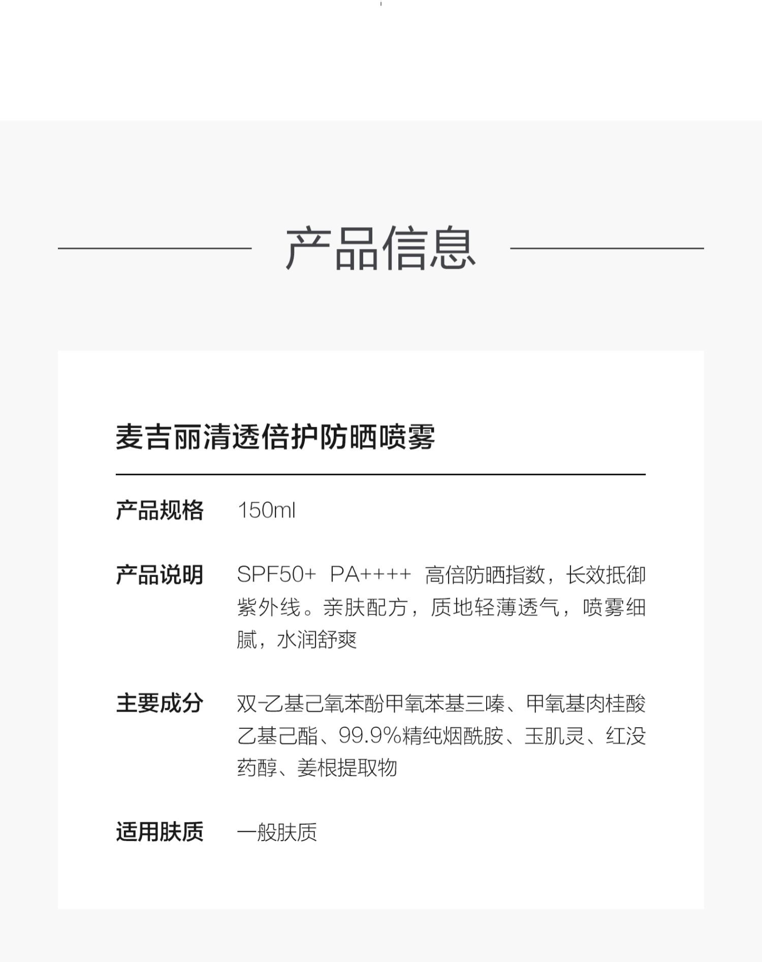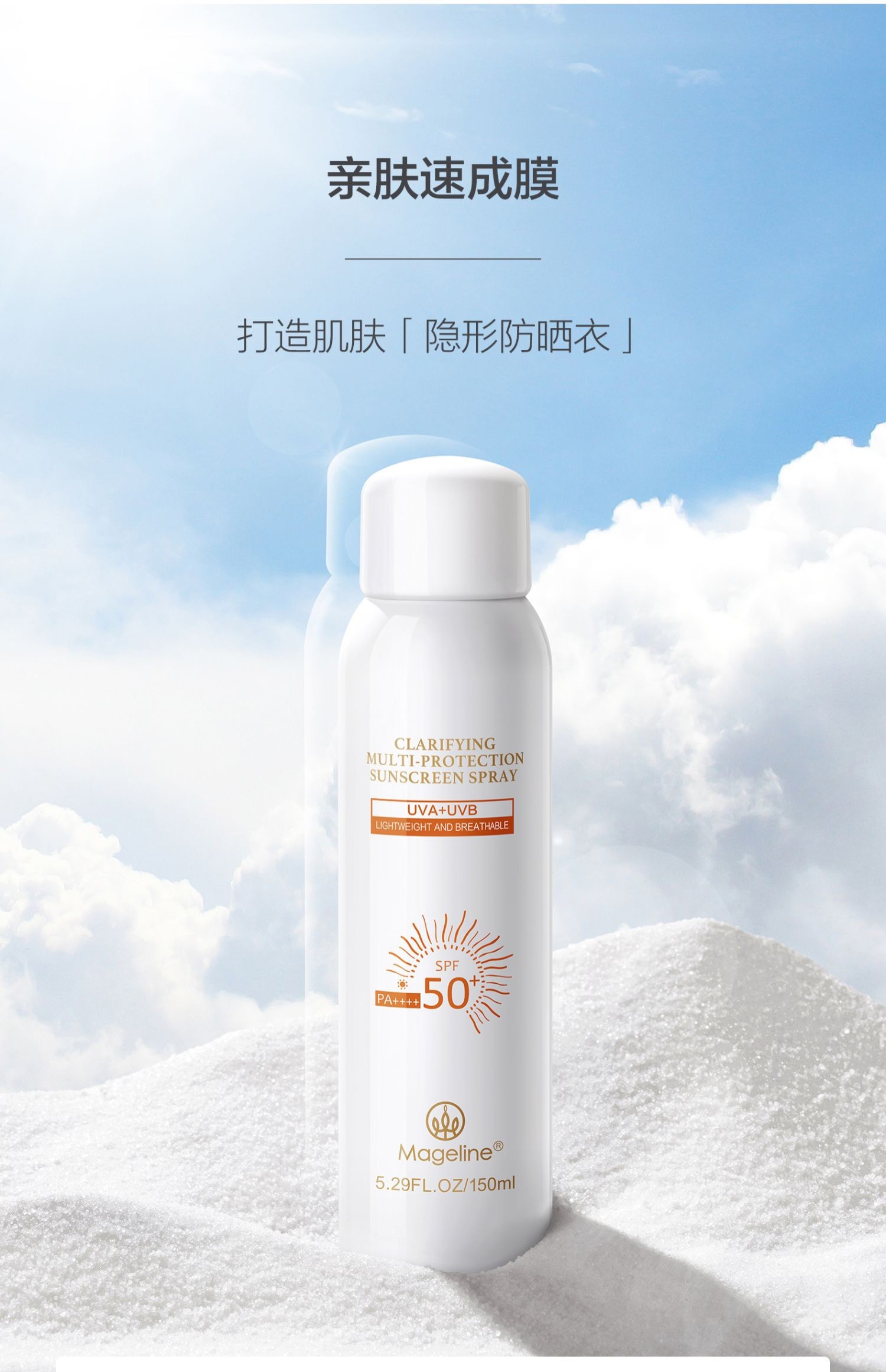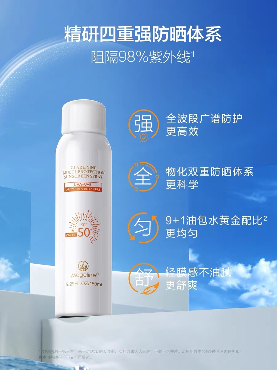 麦吉丽全新上市清透倍护防晒喷雾 高倍耐晒水润清透不油腻