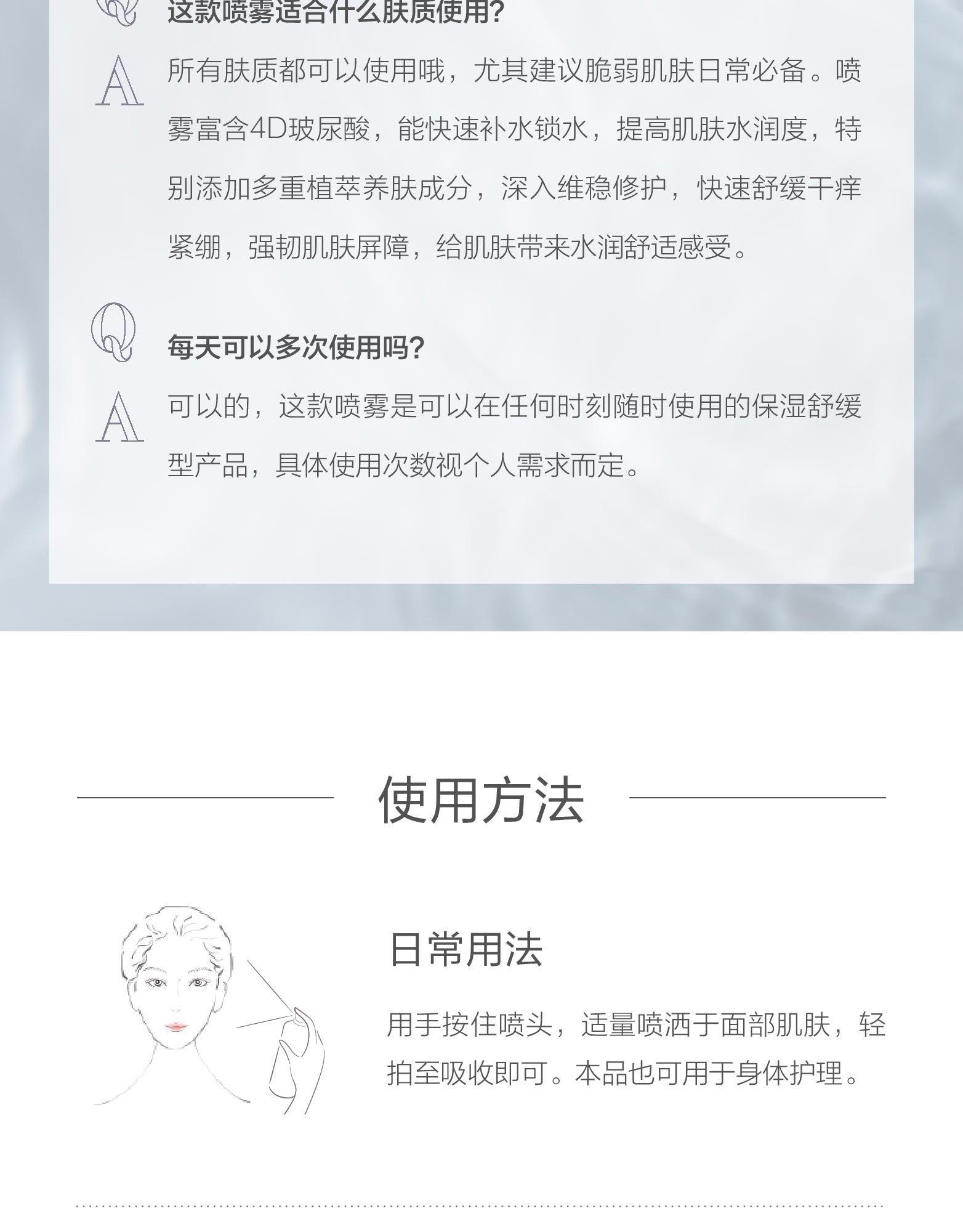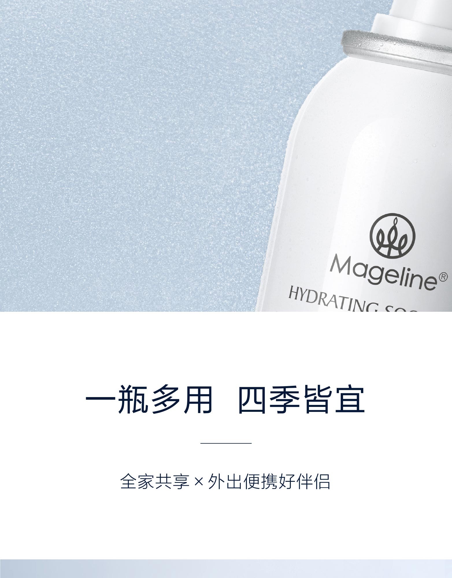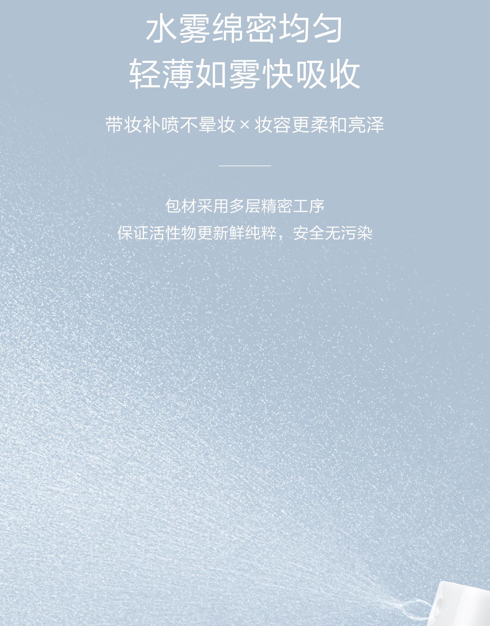 水雾绵密均匀,一瓶多用四季皆宜,全家共享不挑肤,外出便携好伴侣!
