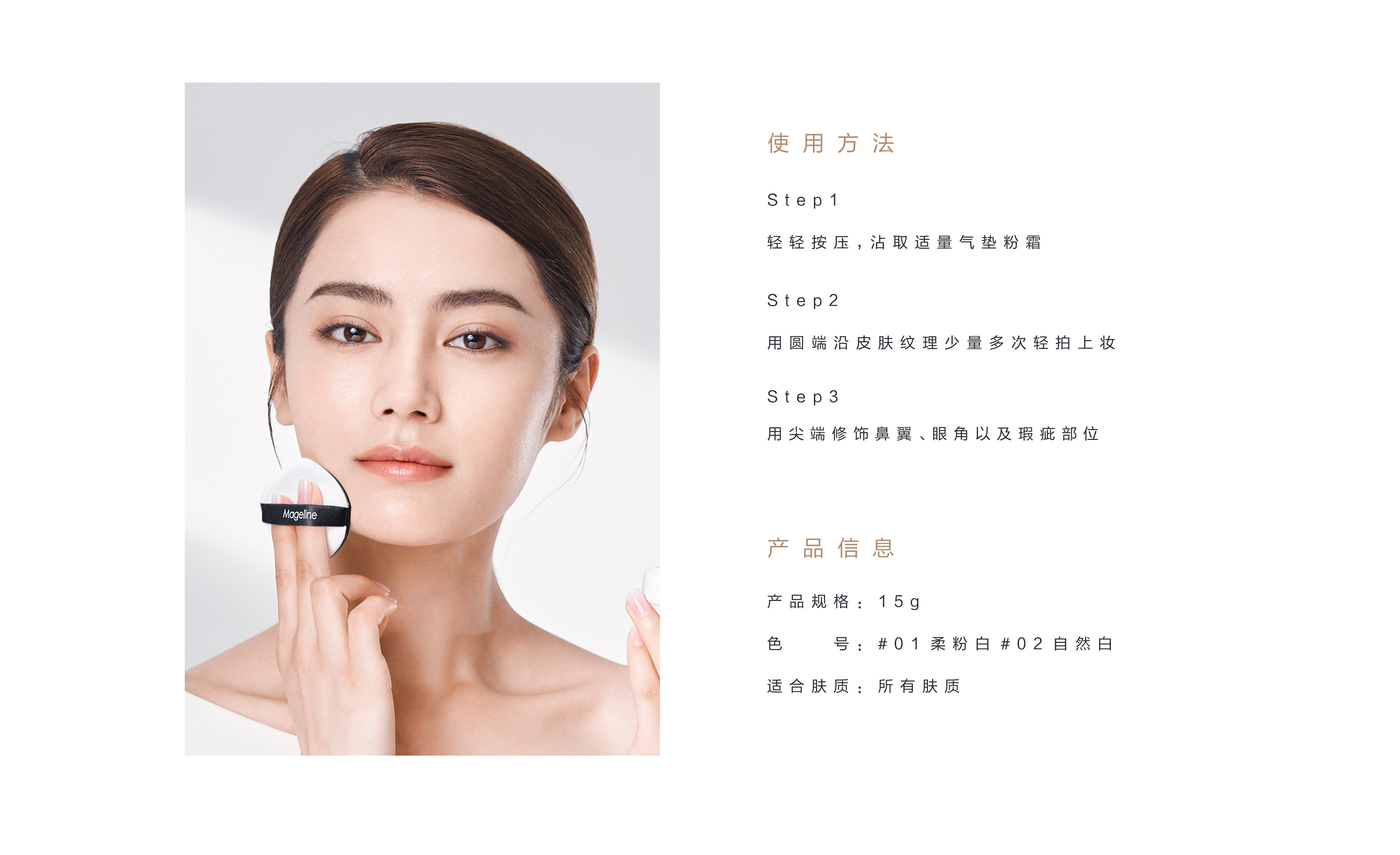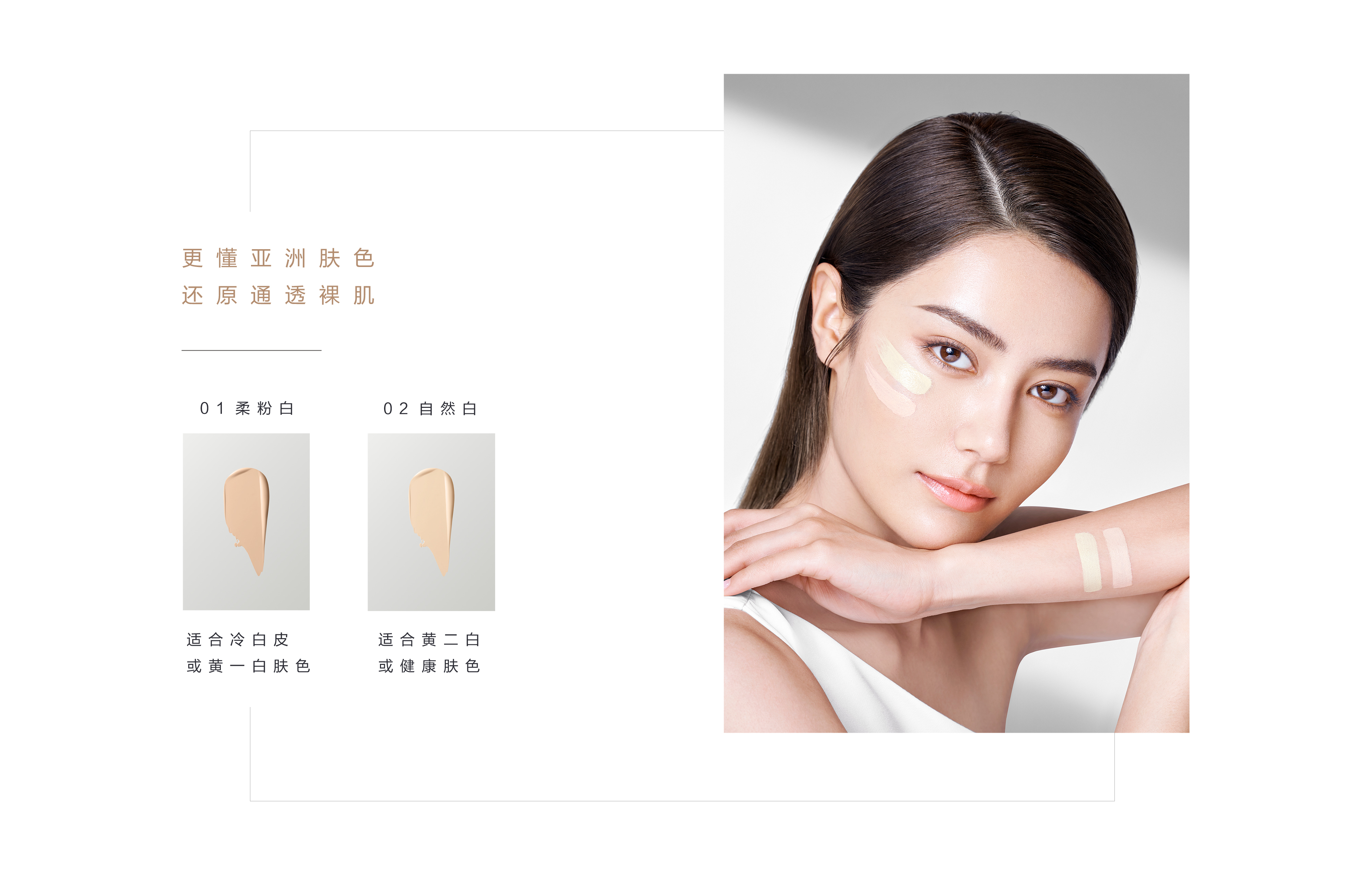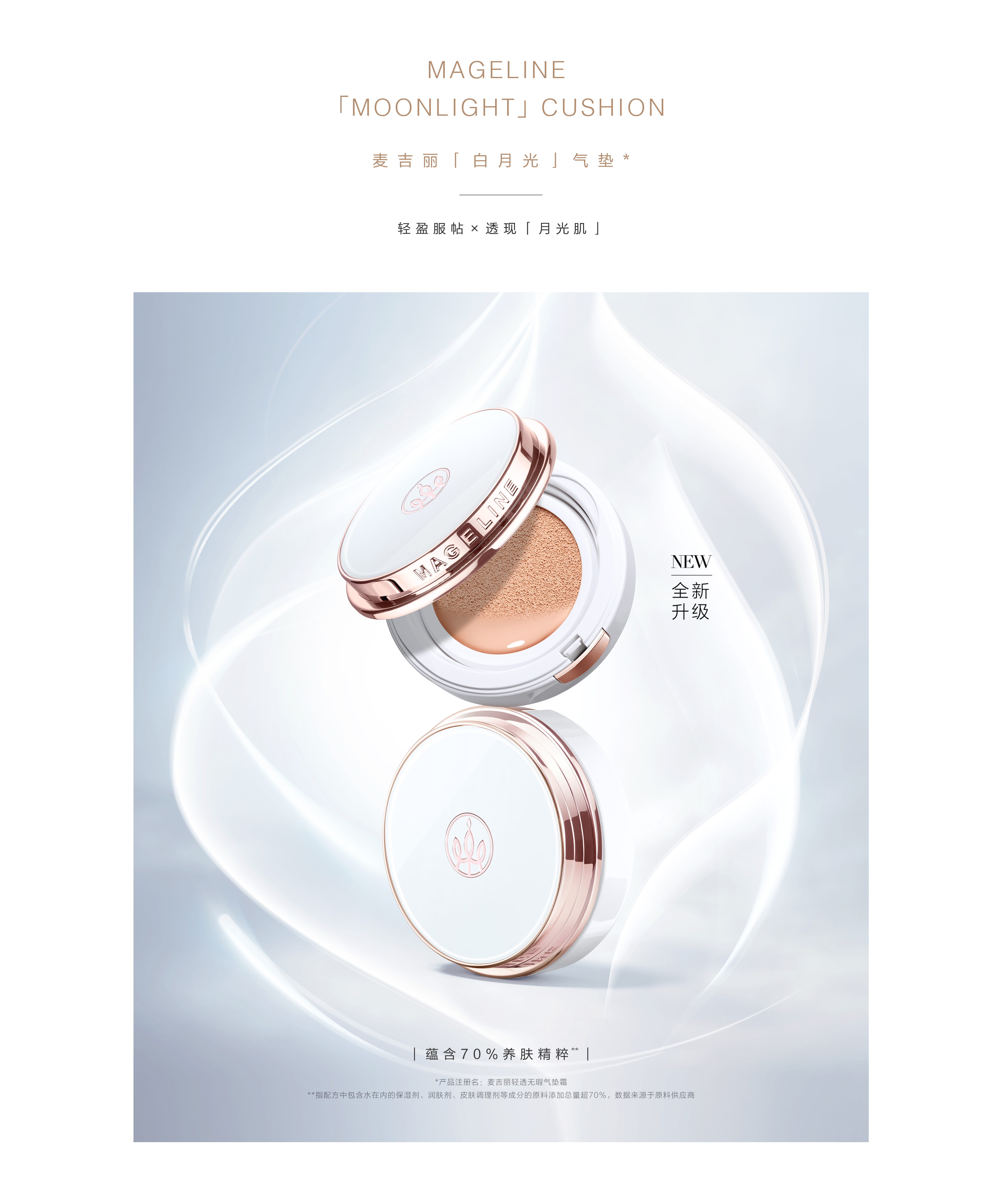 独特高折射率调光技术,打造裸感“月光肌”. 宛如温柔月光,微微发光. 自然妆面,轻盈透现.