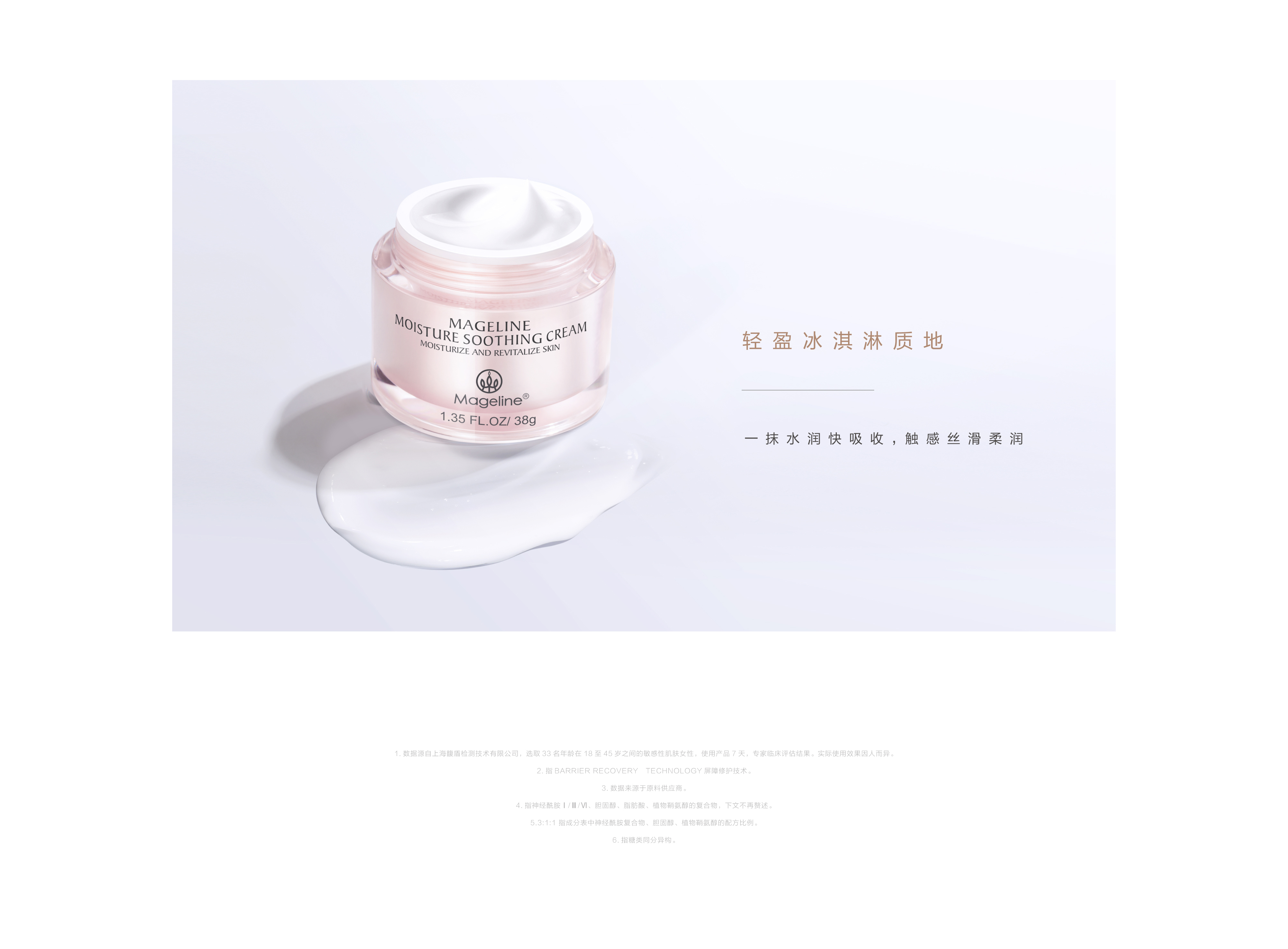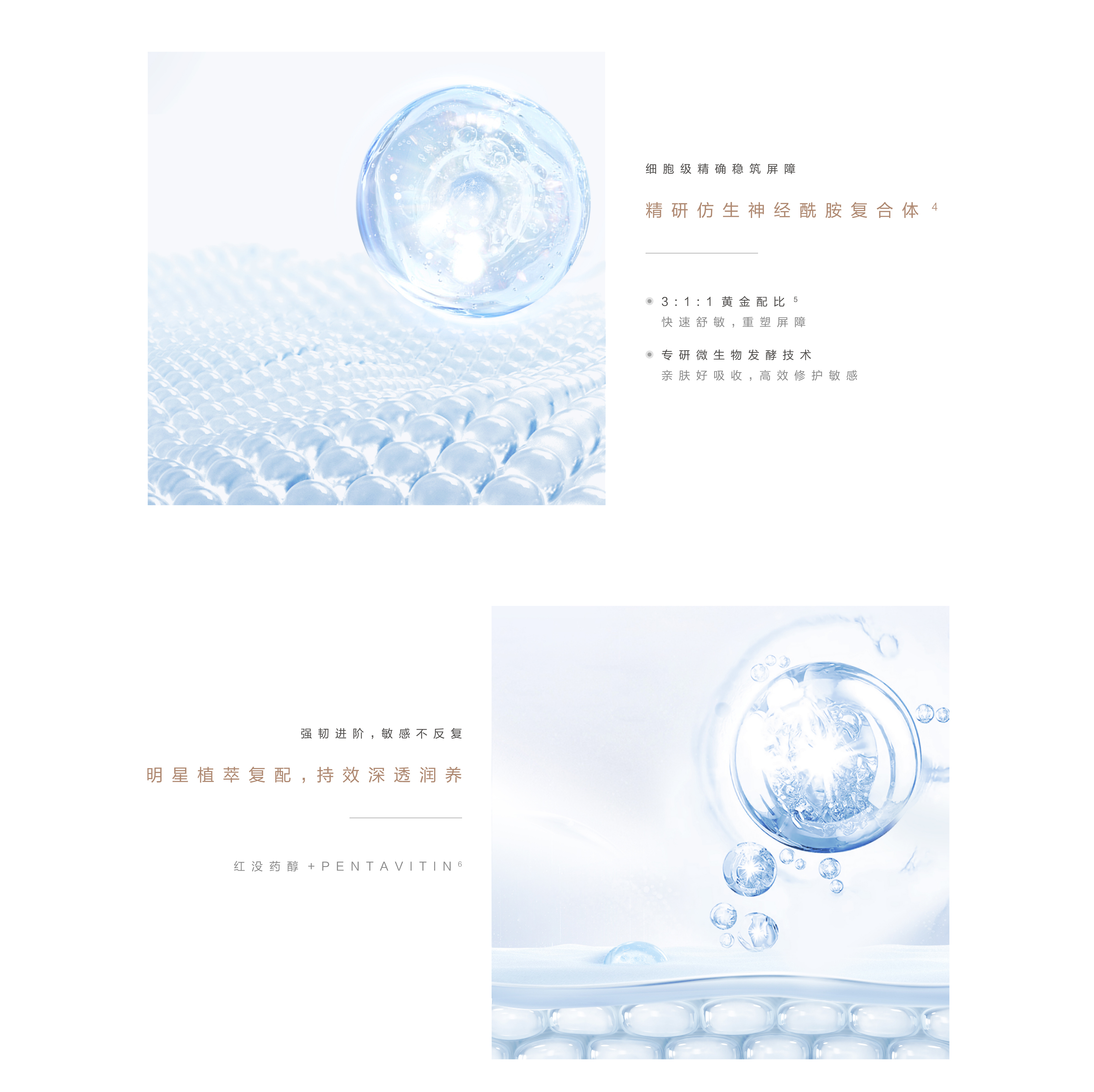 改善肌肤干燥脱屑, 脆弱泛红, 肤色暗沉. 丰盈水润质地, 触感丝滑柔润, 添加酵母, 植物提取物精华及霍霍巴籽油等滋养保湿成分, 为肌肤补充水分