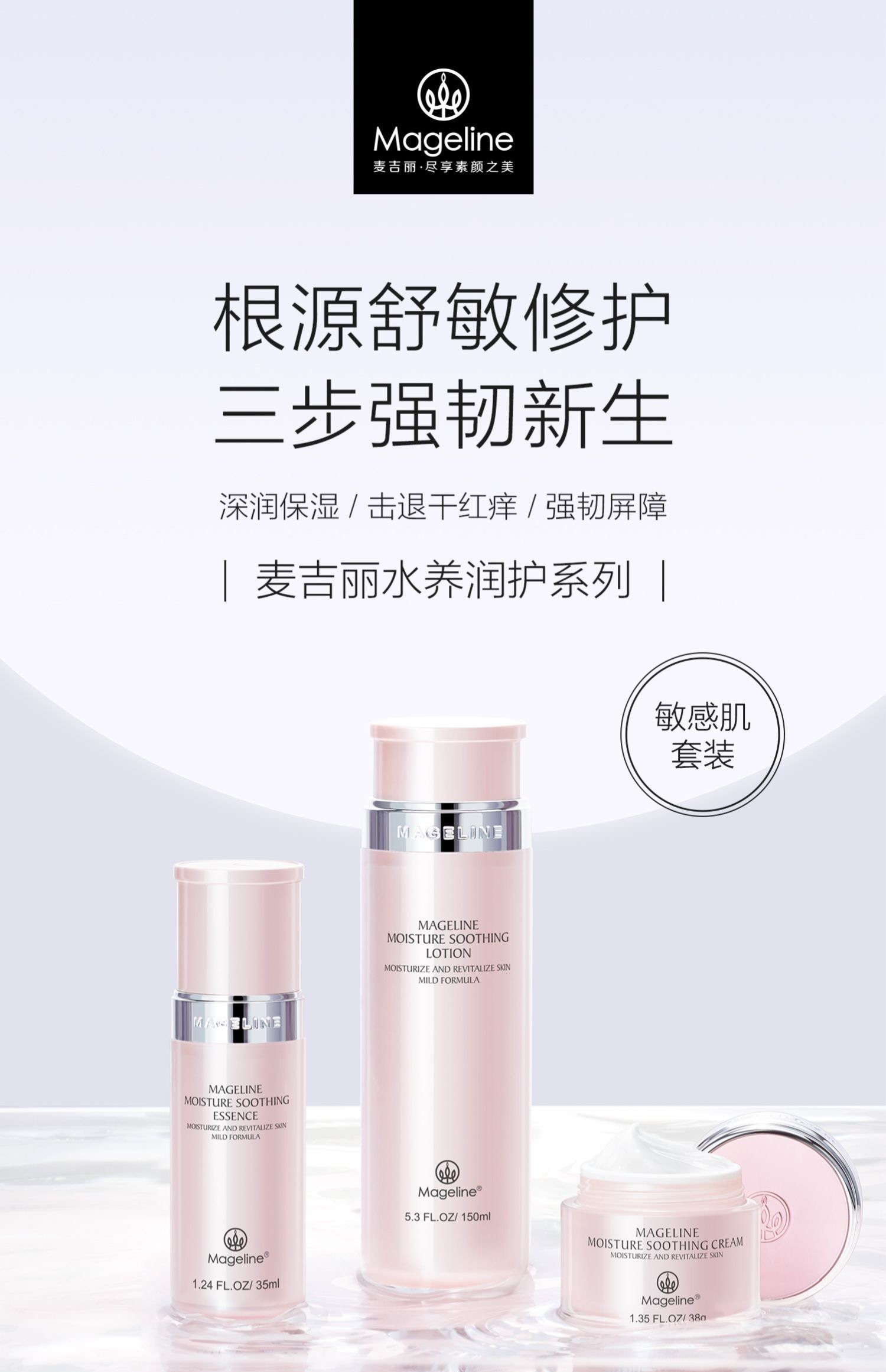 蕴含温和舒缓及保湿成分,深层补水保湿,