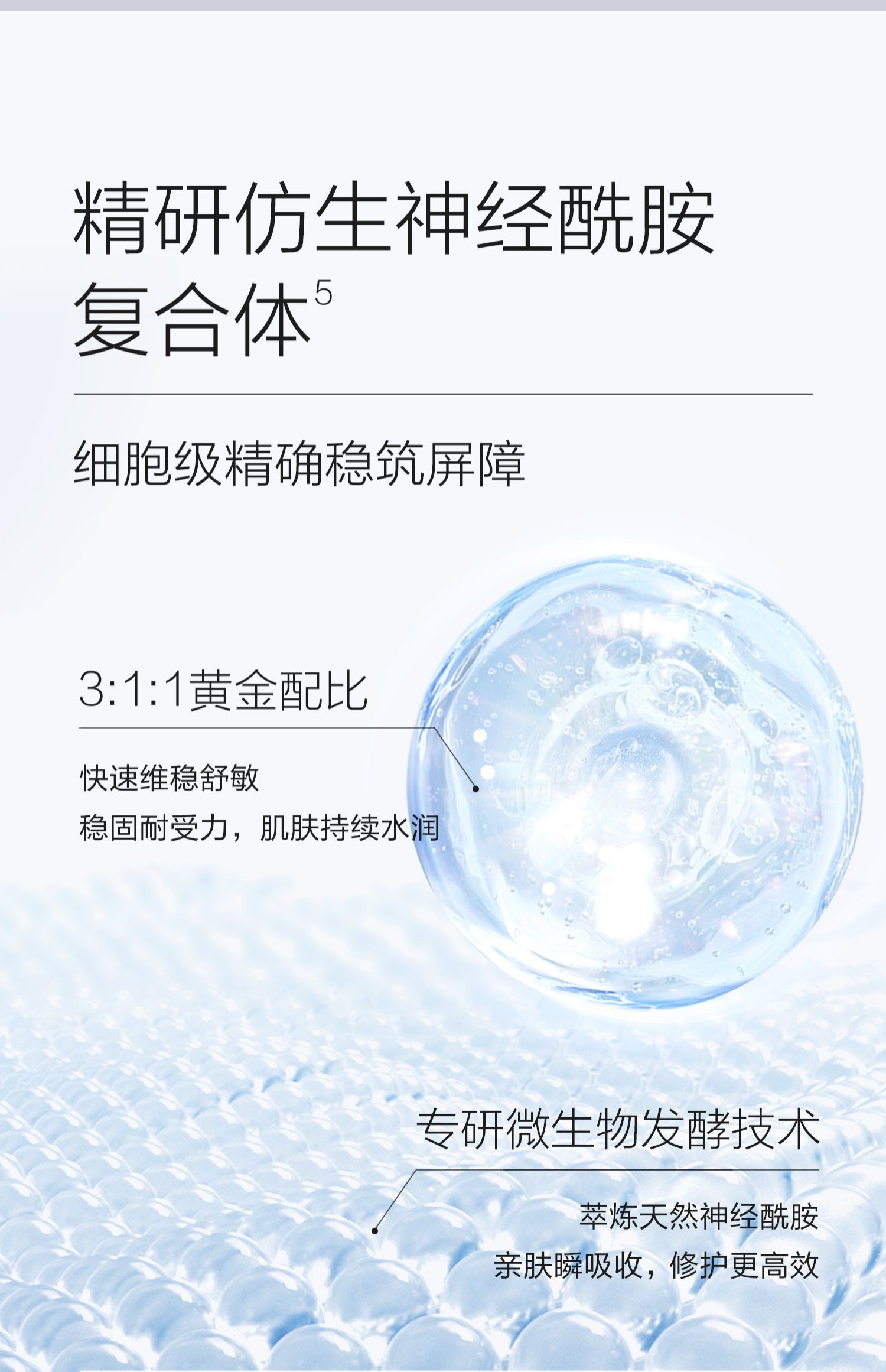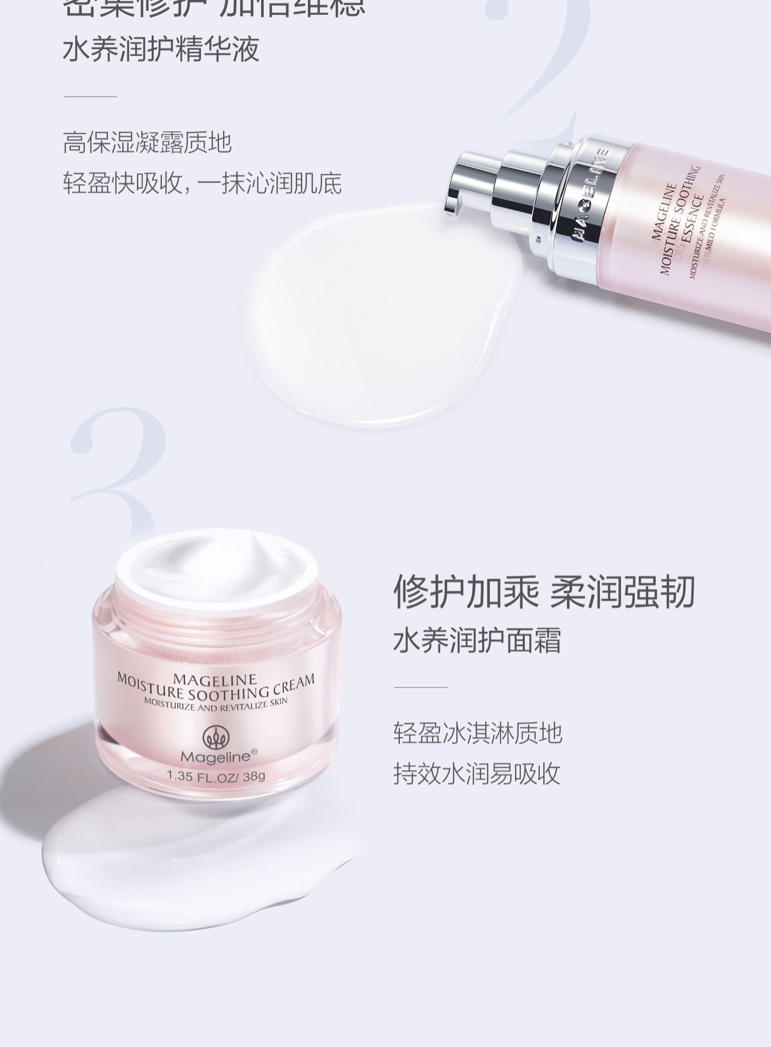 丰盈水润质地,飽感丝滑柔润,蕴含温和部缓及保湿成分,为肌