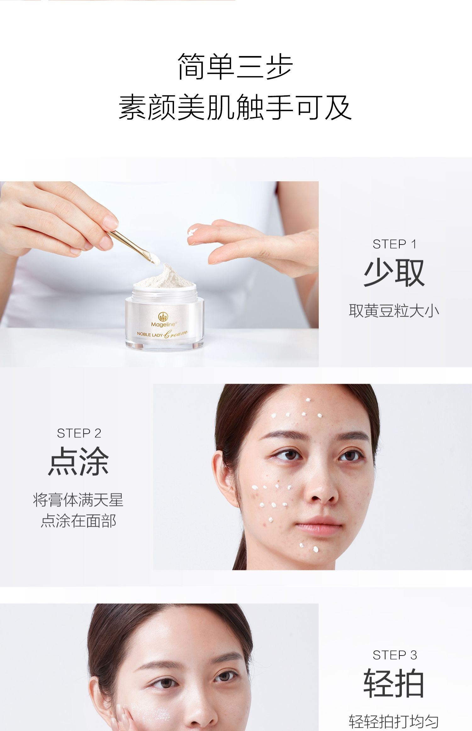 彩妆只能掩饰面部瑕疵,无法根源解决肌肤问题,每天涂抹涂抹厚重的粉妆,很容易堵塞毛孔,加重肤色暗黄等问题,长期下来会离“素颜美肌”渐行渐远哦!其实,很简单,你只需要一瓶麦吉丽贵妇美颜膏就解决了!它是一款可以代替BB霜,粉饼的保养品、护肤品,不堵塞毛孔,更不用担心浮粉“掉粉”,因为它成分天然,超好吸收。