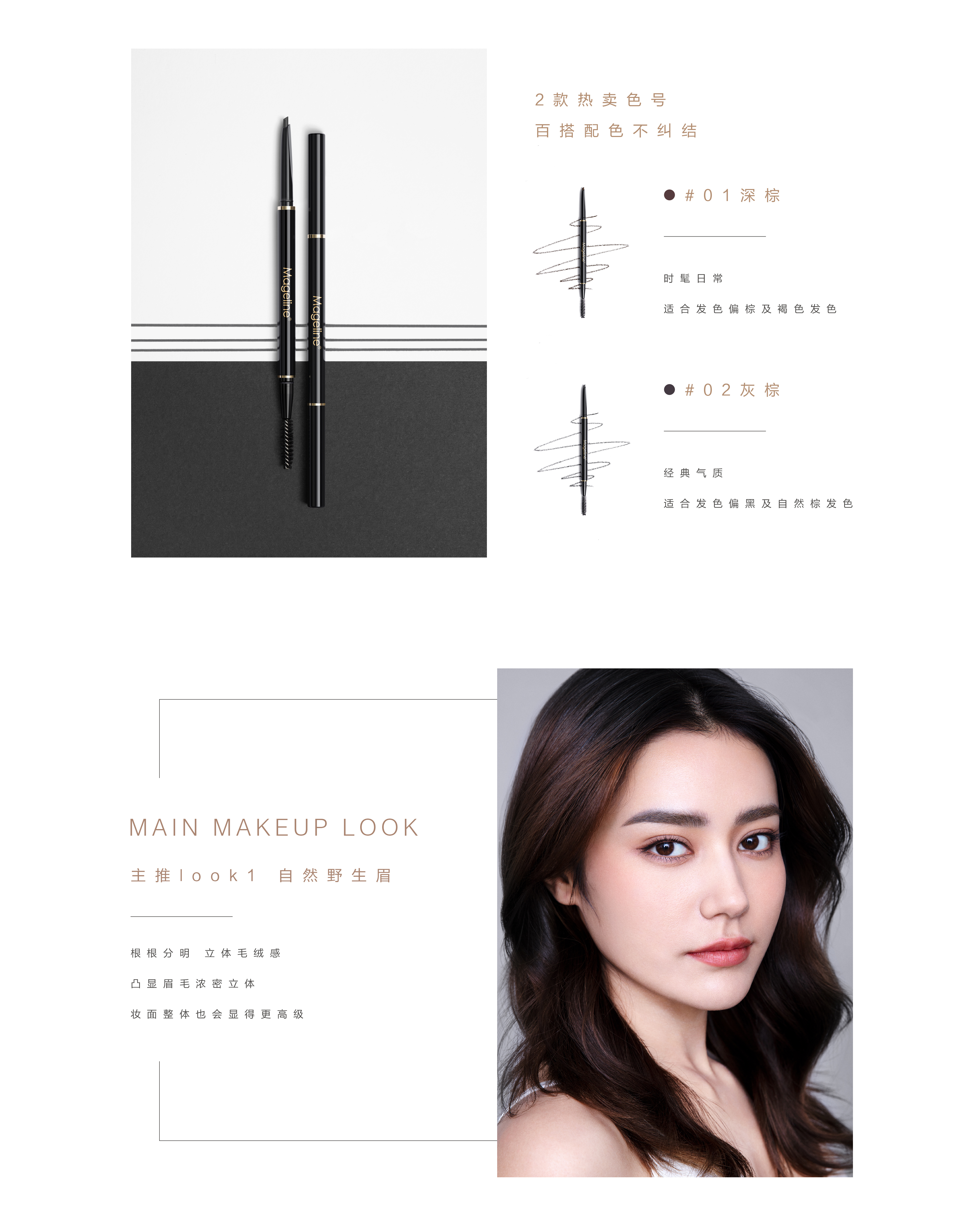 根据亚洲人发色匹配2种百搭眉色: